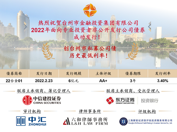 開年之際,市金投集團于資本市場內再嘗試再出發!集團計劃財務部積極響應國家、省、市政策號召與集團融資工作部署,于2月23日成功面向專業投資者非公開發行公司債券(私募公司債)6億元,創臺州市私募公司債歷史最低利率。