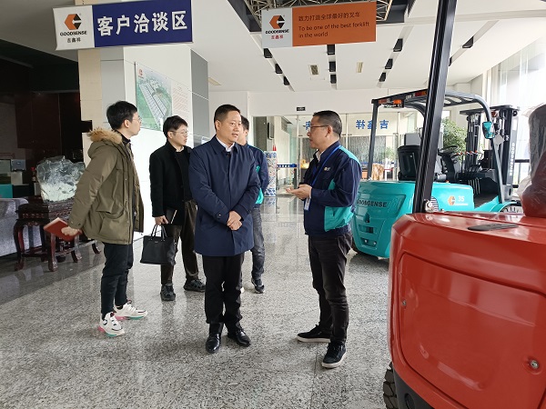 會上,浙江吉鑫祥叉車制造有限公司總經理陳云福介紹了吉鑫祥的經營情況,公司緊跟時代發展,將鋰電池、氫燃料電池和自動駕駛等新技術應用到叉車等園區用車領域,已成功打開民航市場。在參觀車間并聽取企業介紹后,管順正與企業負責人就企業架構設置、上市流程、上市應關注的要點等方面進行了深入溝通,為企業面臨的發展及上市融資問題排憂解難。