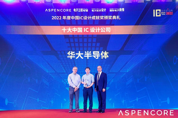 近日,中國IC設計成就獎頒獎典禮暨中國IC領袖峰會在南京舉行,市金投集團公司聯合工銀資本參與投資的華大半導體有限公司憑借在工業控制、汽車電子、物聯網等領域的綜合實力,再度榮獲2022中國IC設計成就獎之“十大中國IC設計公司”。