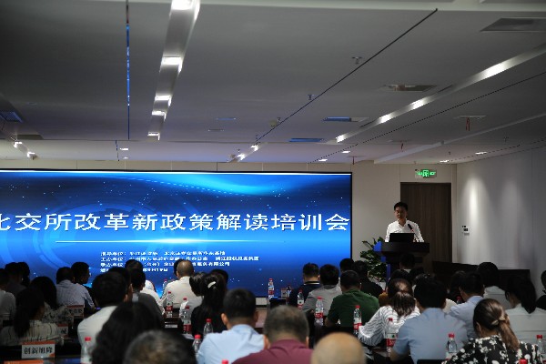 9月19日上午,北交所改革新政策解讀培訓活動在金投資本廣場舉行。本次活動由臺州市金融辦主辦,浙股集團臺州公司、市金投集團承辦,浙江證監局、北交所華東基地指導。市金融辦黨組書記、主任胡新民,省證監局副處長胡亦盛,北交所華東區域副首席代表魏士鈞,各縣(市、區)金融工作中心、臺州灣新區財政金融局主要負責人及多家雙創苗圃擬上市企業主要負責人、證券機構負責人等參加本次培訓。