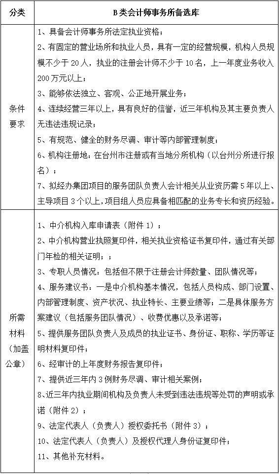 根據集團所需服務的類型、復雜程度以及溝通的便捷性,本次擬建立以下備選庫:會計師事務所備選庫(A類、B類)、律師事務所備選庫(A類、B類)。