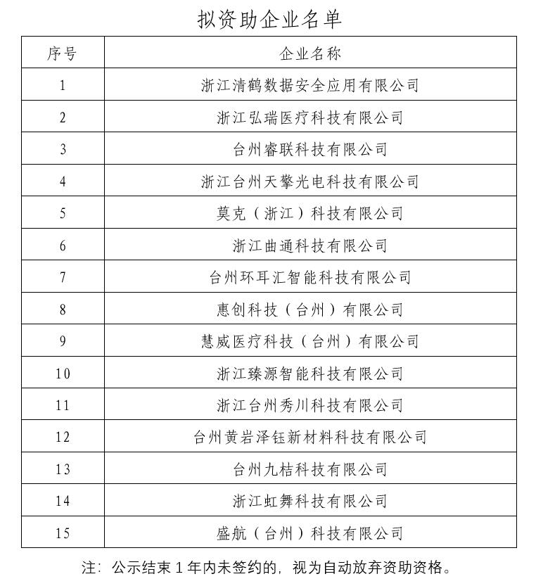 根據(jù)《臺(tái)州市科創(chuàng)基金支持人才創(chuàng)業(yè)實(shí)施辦法》(臺(tái)人才領(lǐng)〔2023〕44號(hào))的規(guī)定,經(jīng)天使夢(mèng)想基金管理委員會(huì)審議,臺(tái)州市天使夢(mèng)想基金擬對(duì)15家人才創(chuàng)業(yè)項(xiàng)目進(jìn)行資助,現(xiàn)將名單予以公示。如有意見(jiàn),可向市科創(chuàng)集團(tuán)反映。
