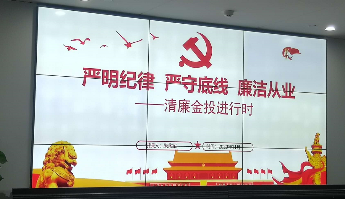 11月2日晚,集團紀委書記朱永軍以“嚴明紀律 嚴守底線 廉潔從業”為主題為集團全體干部職工講黨課。