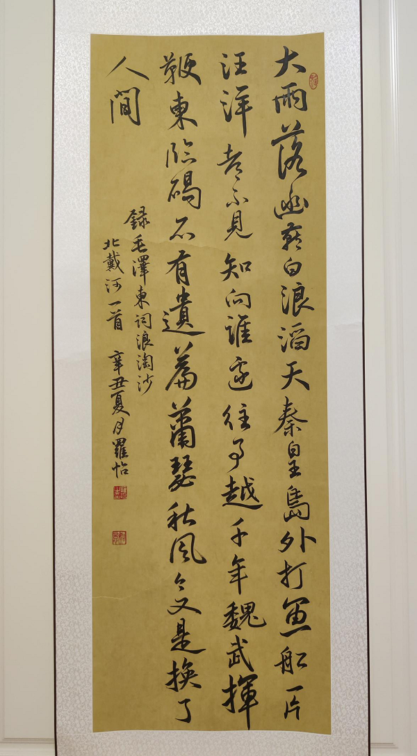 “大雨落幽燕,白浪滔天,秦皇島外打魚船。一片汪洋都不見,知向誰邊?往事越千年,魏武揮鞭,東臨碣石有遺篇。蕭瑟秋風今又是,換了人間。”機關黨支部黨員代表、臺州市書法家協會會員羅怡同志通過書法的藝術表現形式,以真摯的情感、精湛的技藝,傳遞對黨心聲,緬懷激情歲月,展望美好未來。